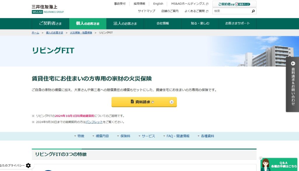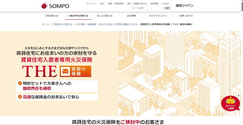しかし、その手厚さと引き換えに、保険料は今回比較した中で最も高額です。特に単身者の場合、最安クラスの保険と比較すると3倍以上の価格差があり、費用対効果の面では慎重な判断が求められます。また、借家人賠償責任保険の限度額が1,500万円と、補償範囲の広さに比べるとやや物足りない印象も受けます。予算に十分な余裕があり、とにかく最高クラスの補償を求める方向けの保険と言えます。