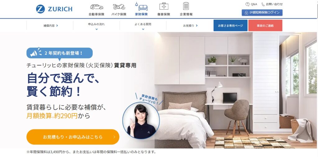 3位:チューリッヒ少額短期保険 | ミニケア-賃貸保険-