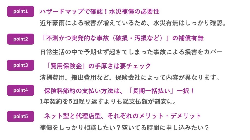 最終的に保険を決める際には、以下の点をチェックリストとして確認することをおすすめします。