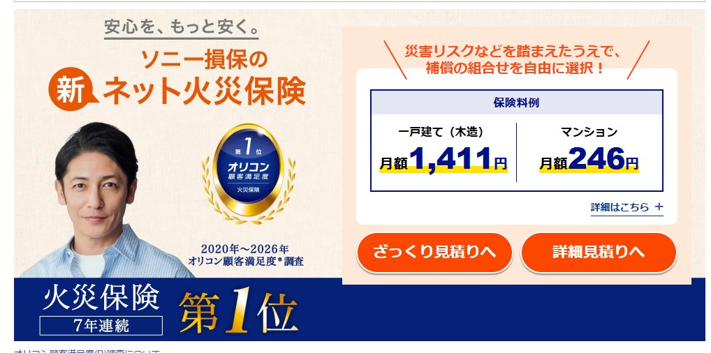 保険料重視の方におすすめ → ソニー損保「新ネット火災保険」 → セコム損害保険「セコム安心マイホーム保険」