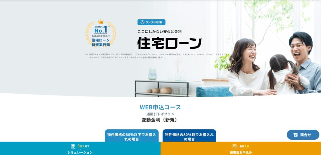 | 商品プラン | 住宅ローン(WEB申込コース) | |